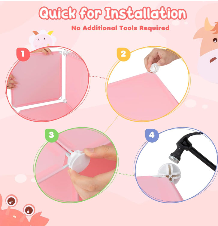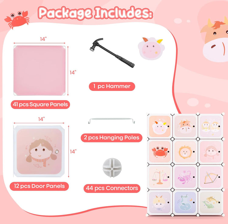 12-Cube Closet Shelves, DIY Plastic Wardrobe, Modular Bookcase with Doors for Bedroom, Living Room, Office, Black. GREAT FOR STORAGE: Organize your folded clothes? Store your bags? Store your books or magazines? This plastic organizer can do all these tasks. More stable than ever, connected by durable ABS plastic parts and equipped with an anti-tip kit, the sturdy metal frame panels provide great stability; Each cube measures 11.8"L x 11.8"W x 11.8"H, making it much more stable than before.