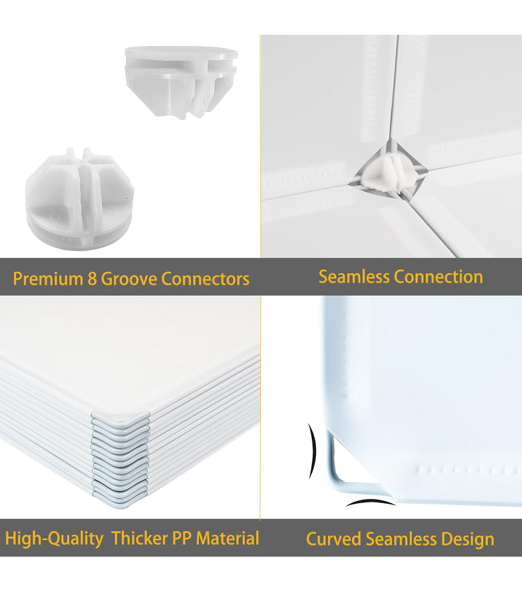 - High-quality material: The cube storage rack is made of high-quality high-hardness ABS connectors and thickened PP metal panel panels, which is sturdy and durable. Upgraded high-foot connectors at the bottom, keep the cube shelf free from wet and dust