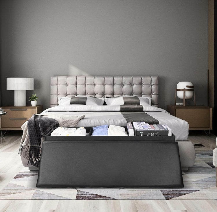 - 【LARGE STORAGE SPACE】Storage ottoman equipped with 3 compartments. Spacious hidden storage room for sundries including shoe, blankets, de-cluttering your entryway & bedroom.